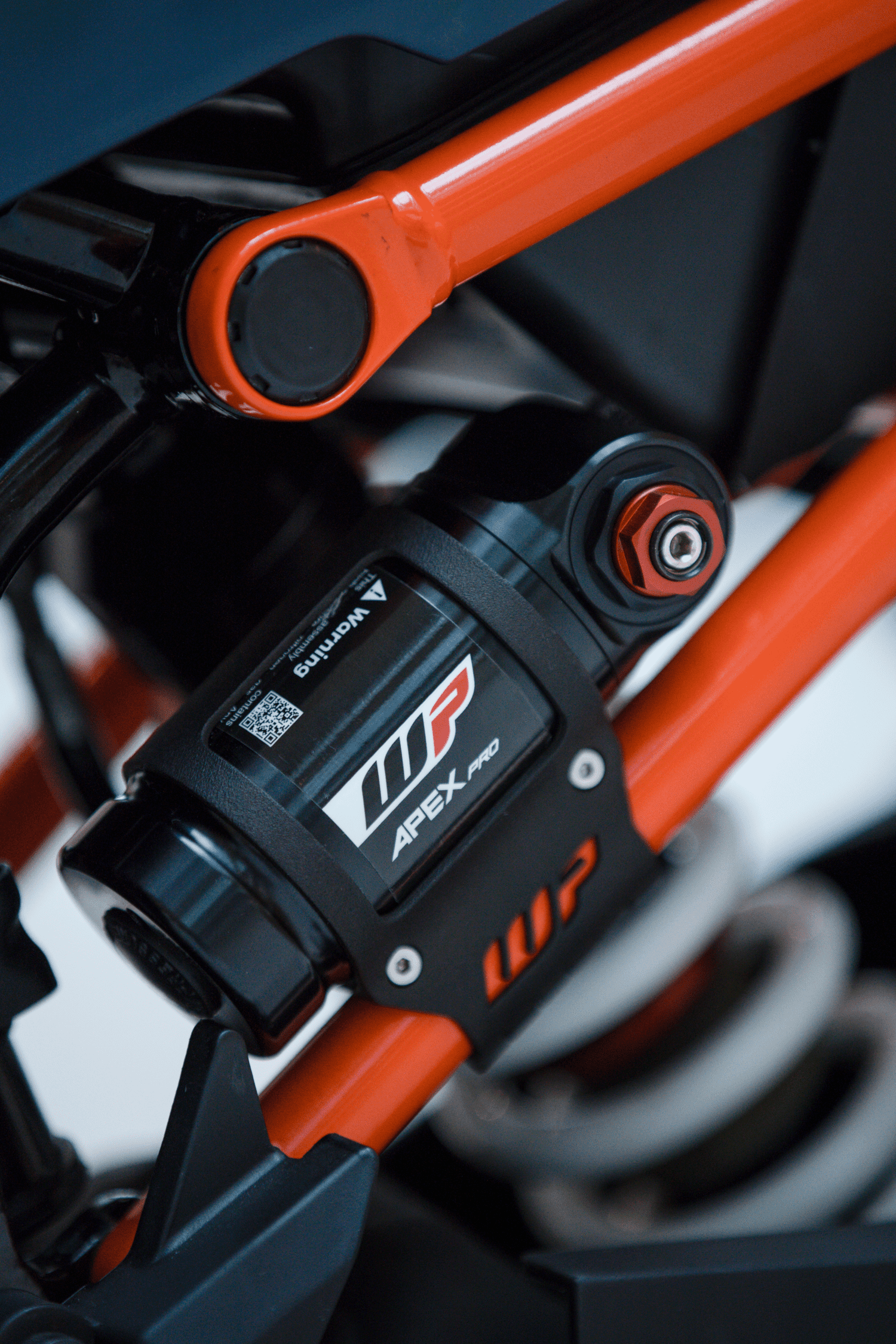 APEX PROは、数十年にわたるレース経験と、現在のレースタイトルライダーとの協力から完成し、純粋で凝縮されたモータースポーツの象徴です。これらの情報をもとに、あなたのKTM 790 DUKE / 890 DUKE R / 1290 SUPER DUKE Rのために最高精度で作られたのが、新しいWP APEX PRO 7746 SHOCKです。超軽量なハイテク素材は、モータースポーツの要求を路上で実現化します。WP APEX PRO 7746 SHOCKのサスペンション特性は、高速と低速の圧縮と伸縮を別々に設定することで、ほぼすべての状況に簡単に調整することができます。SCS BIG VALVEテクノロジーにより、サスペンションはあらゆる走行シーンで最高精度動きとダイレクトな路面状況のフィードバックを提供します。